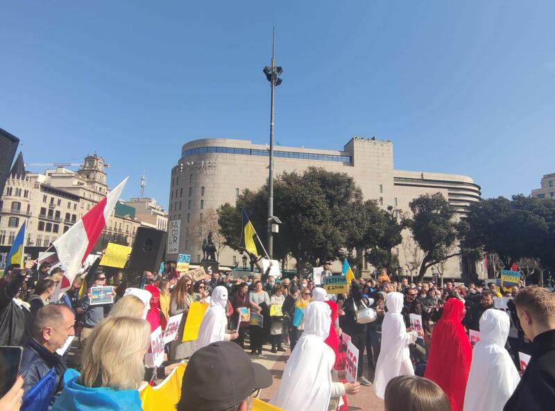 Este domingo es el cuarto día consecutivo de concentraciones en el centro de la capital catalana para condenar el ataque y reclamar que las tropas rusas abandonen Ucrania.