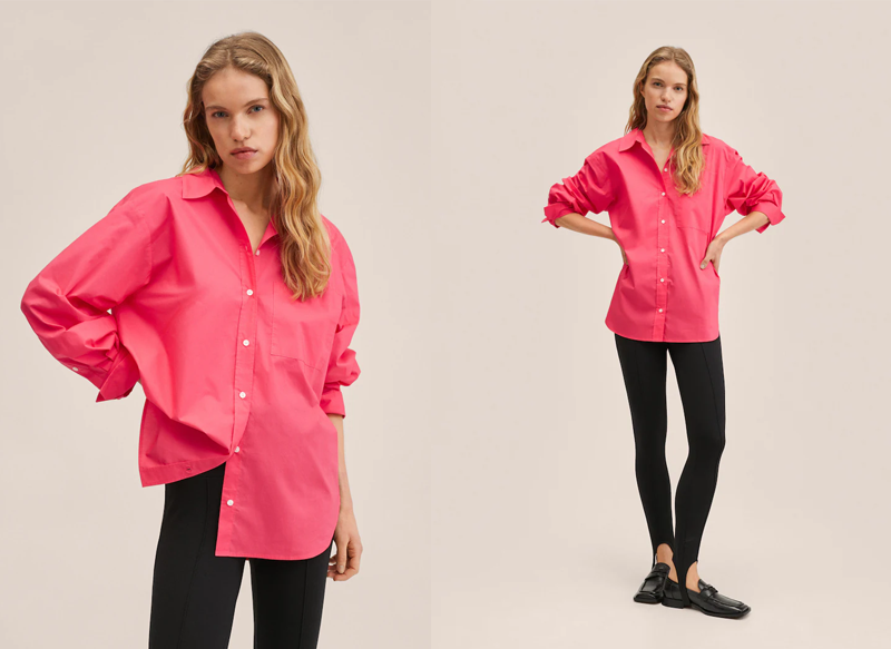 Una última recomendación a tener en cuenta es esta camisa algodón oversize de Mango, modelo que se vende en rojo coral, verde pastel y blanco roto, encontrándose confeccionada en 100% algodón.