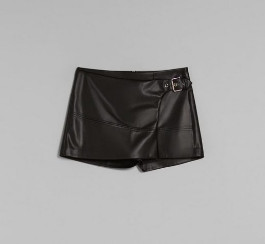El short es una prenda que combina el short y la skirt, es decir, una falda tipo short. Es una gran opción para lucir pierna en looks sexys y atrevidos, pero con la comodidad de llevar un pantalón. En Bershka destaca este modelo de poliuretano con efecto piel, una tendencia que se mantiene, con detalle de hebilla lateral para un punto rockero. Una elección perfecta para tus outfits más cañeros de viernes noche. El precio está rebajado un 30% y ahora cuesta 13,99€.