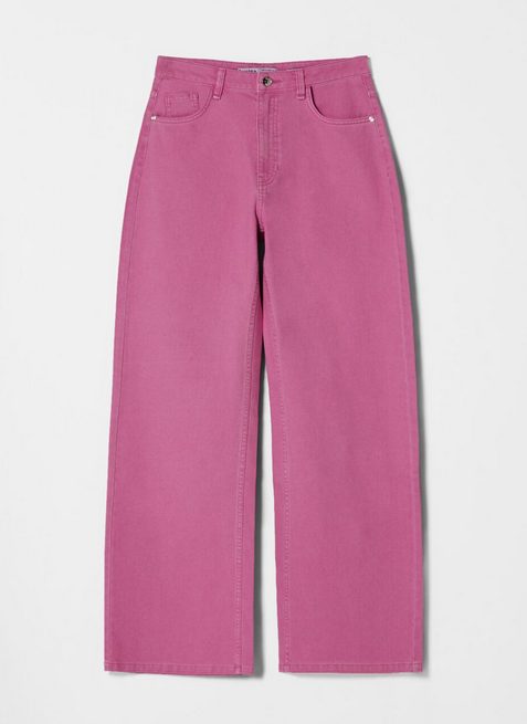 Después de años enfundadas en pantalones pitillo, las piernas anchas y fluidas vuelven a ocupar su lugar. En Bershka puedes hacerte con este cómodo pantalón de sarga de corte wide leg y talle alto. Cierra con botón y cremallera y tiene 5 bolsillos. Lo puedes encontrar en un montón de colores: negro, blanco, marrón, rosa, verde y amarillo. Está fabricado en 100% algodón, es decir que no tiene tejido elástico. Si te gusta este tipo de pantalones, aprovecha y hazte con varios pares, ya que te los puedes poner todo el año. Tienen un 30% de descuento y ahora cuestan 13.99€.