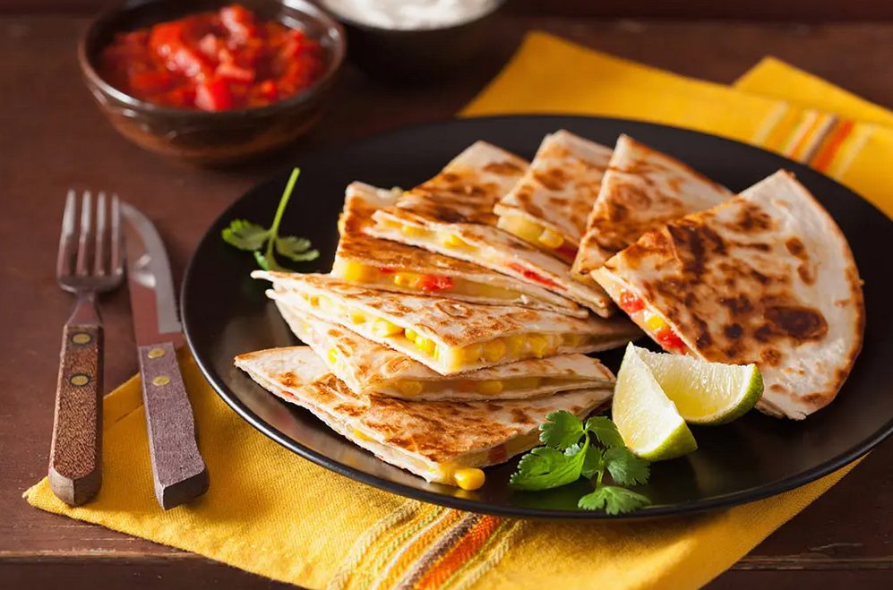 Las quesadillas son uno de los platos más populares de la gastronomía mexicana, junto con los nachos, el guacamole, las fajitas y los burritos. Han traspasado fronteras y se comen en un montón de países del continente americano y también han cruzado el Atlántico y cada vez son más famosas en Europa. La quesadilla podría definirse como una especia de bocadillo elaborado con tortilla, que puede ser de trigo o de maíz, siendo el queso el ingrediente principal. Se puede acompañar con verduras, pollo, y prácticamente cualquier ingrediente.