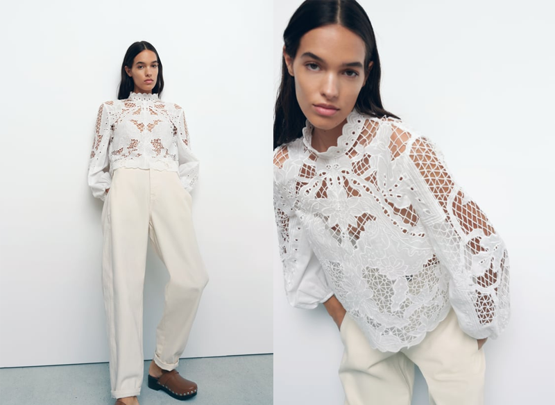 La prenda que hará que todos te miren dos veces es esta blusa bordados perforados de Zara, modelo que se vende tanto en negro como en blanco. Se vende en tallas XS a XL por un precio de 39,95 euros.
