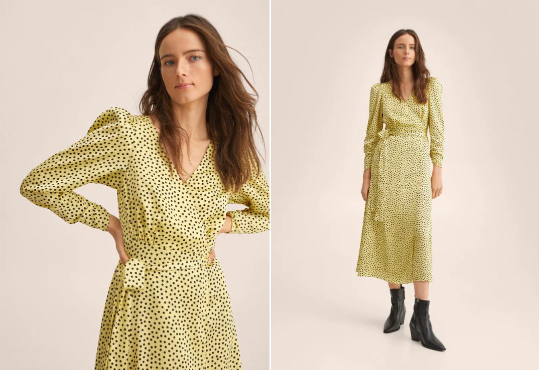De cara a estrenar prendas esta primavera, seguro que una de las cosas que primero se te viene a la mente es un buen vestido. En Mango cuentan con el candidato ideal para convertirse en el rey de tu armario. Hablamos de este bonito vestido cruzado, estampado con topos, disponible en uno de los tonos amarillos más alegres de la primavera. Con un precio de 39,99 euros, lo querrás en casa. Pero eso no es todo, sigue leyendo para descubrir otras novedades que merecen la pena.