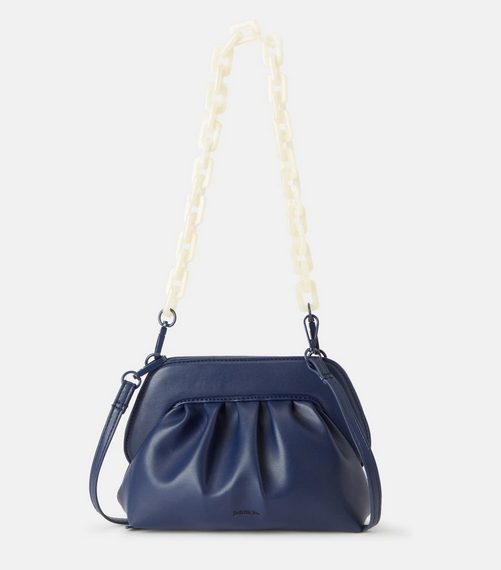 El azul es el color de la temporada y lo vamos a encontrar en toda su gama cromática. La firma Jo & Mr. Joe nos presenta este bolso bandolera con un original diseño fruncido tipo monedero antiguo. Es de color azul marino y tiene un asa de cadena en tono crudo a contraste. Cierra con imán y en el interior tiene dos bolsillos, uno de ellos con cremallera. Las medidas son 7 (ancho) x 24 (fondo) x 15 (alto) cm y lo puedes conseguir en El Corte Inglés por 49,99 €. Este es el enlace directo.