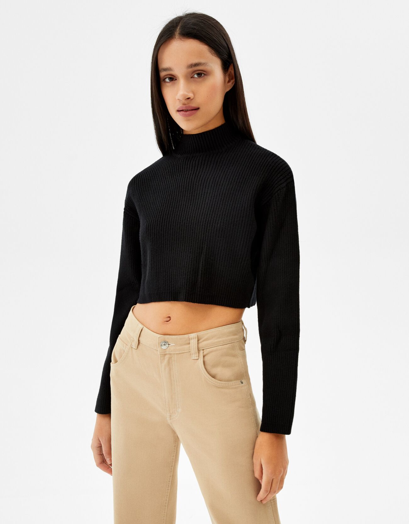 8Jersey rib cuello alto Bershka