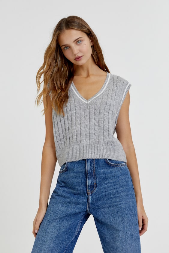Su cuello pico dejara lucir cualquier de tus coloridos o brillantes collares, puedes usar los cortos o los largos. Sin mangas con detalles rib, lo consigues en color gris y podrás llevártelo por solo 13,99 euros.