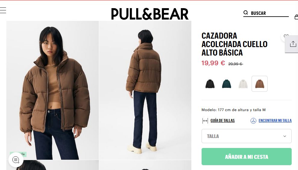 Es una cazadora acolchada de cuello alto disponible en diferentes tonos, perfecta para crear estilo que toda mujer busca en una prenda. Además, cuenta con bolsillos laterales y cierre de cremallera para un mejor estilo. Por lo que, es otra de las prendas perfectas para las temporadas de frío por el tipo de material en que está fabricado. Entonces, si desean comprar esta prenda solo deben entrar a Pull&Bear por 19,99 €.