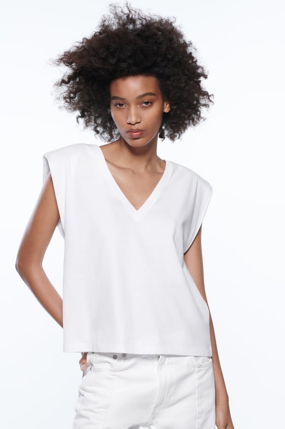 Para cualquier tarde con algo de calor, donde busques la comodidad y el confort, debes lucir la Camiseta con hombreas, que trajo para ti las tiendas Zara. Un poco ancha que permitirá que el calor no se adhiera a tu piel.