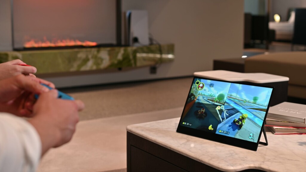 Este monitor 4K AVA inalámbrico es ideal para jugar a la consola en cualquier sitio, como segundo monitor para el portátil, una pantalla más grande para el móvil, etc. Posee una batería de 8.000 mAh, así que puede funcionar de forma inalámbrica, sin enchufe, durante unas horas.