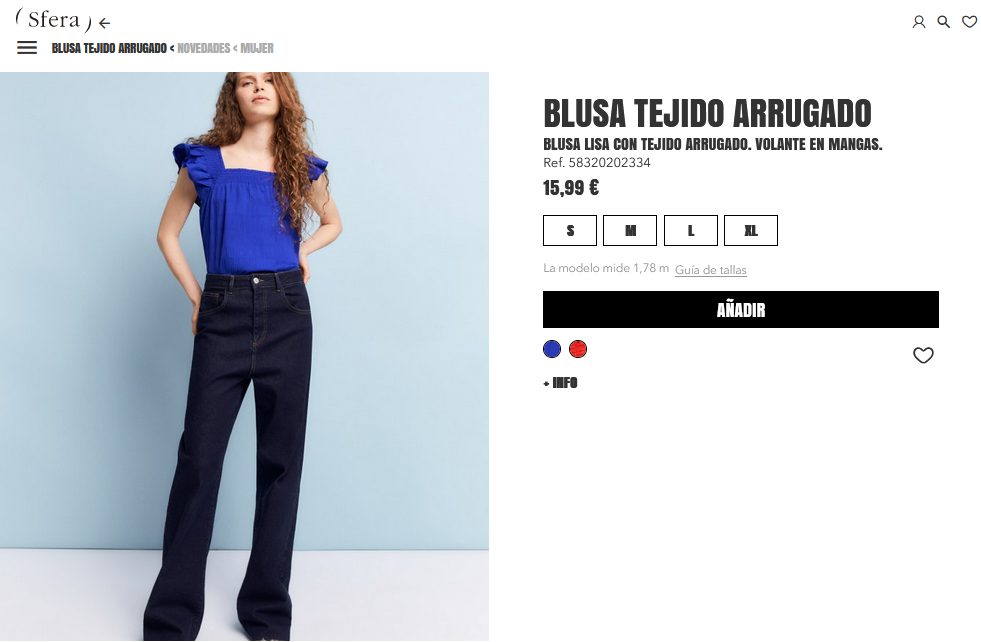 Es una hermosa blusa lisa con tejido arrugado que no puedes dejar pasar en esta temporada. Dado que ofrece un hermoso estilo en todo momento. Cuenta con un estilo de volante de mangas que está completamente recogido para un mejor estilo. Por lo que, se considera una de las prendas más solicitadas por las mujeres en esta temporada de ofertas. Si desean comprar esta prenda solo deben entrar a Sfera por 15,99 €.
