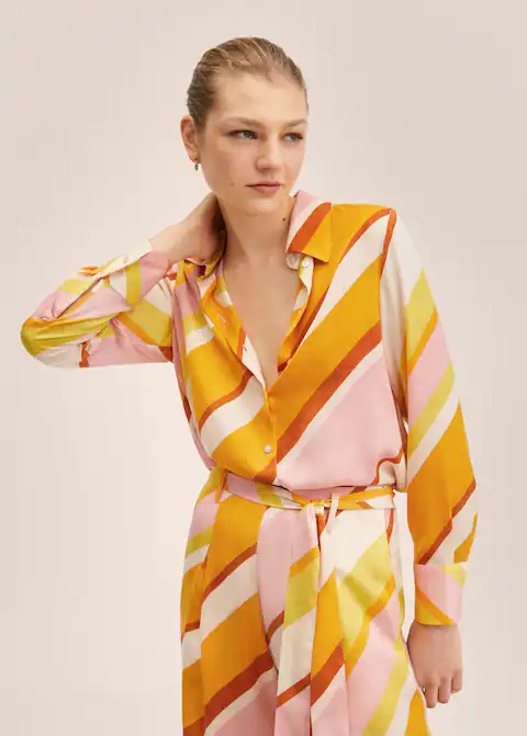 Por solo 29,99 euros puedes llevarte esta delicada prenda de vestir, elaborada en tejido satinado, con un vistoso estampado de rayas, sobre un delicado rosa pastel. Puedes darle un toque formal y destacar todo tu glamur o lucirlo más casual combinándola adecuadamente.