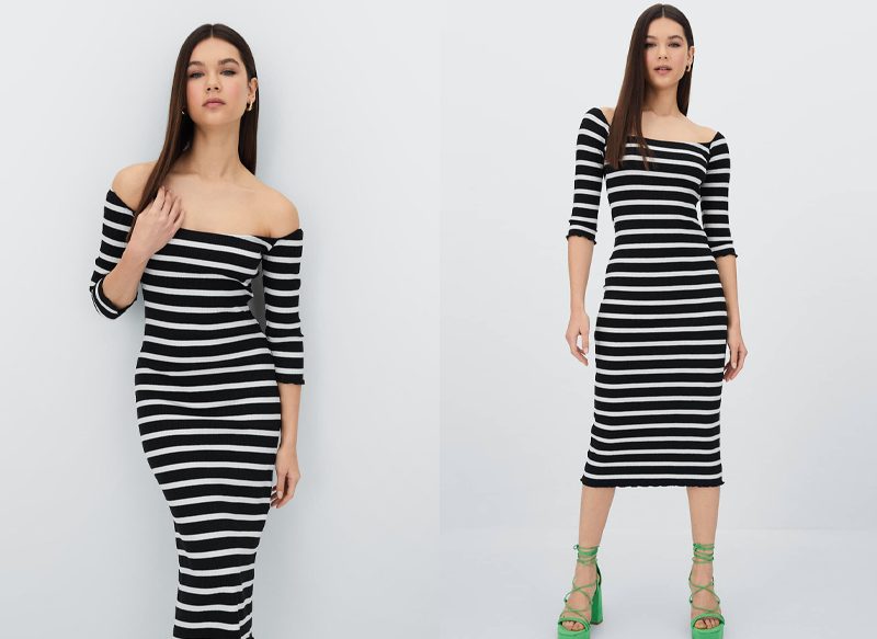 Stradivarius ha lanzado su vestido midi rayas que está llamado a ser todo un éxito de ventas esta primavera. Se vende en color negro y blanco y en tallas XS a XL, siendo su precio actual de venta de 22,99 euros.