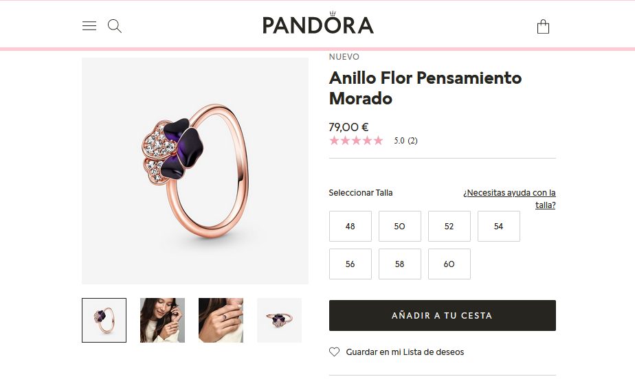 Este anillo se presenta con un recubrimiento electrolítico de oro rosa de segunda ley de 14k. Mientras que dos pétalos del pensamiento se han embellecido con brillante pavé y otros tres pétalos se han esmaltado a mano, haciendo que cada flor sea completamente única. La flor del pensamiento, simboliza el amor en sus todas sus formas. Entonces, si desean comprarla solo deben entrar a Pandora por 79,00 €.