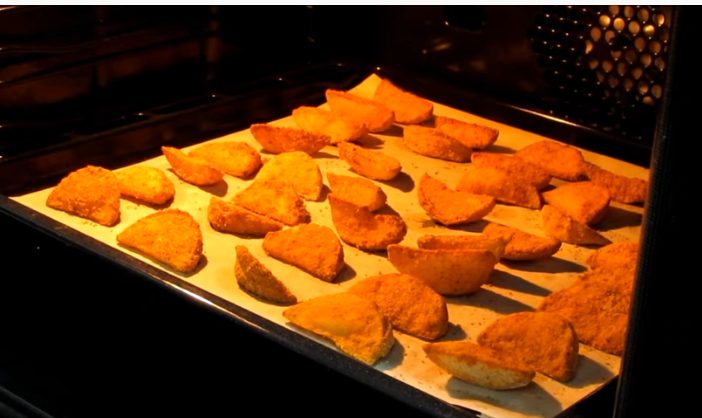 Una vez que tengamos hecho esto, hay que meterlas al horno en la bandeja. Eso sí, antes hay que quitarlas el exceso de harina que pueda haber quedado. Una vez listas las metemos en el horno con un calor por arriba y por abajo a 200 grados. Después de media hora, usamos la opción de ventilador. Si no tenemos, pues es tan fácil como poner la bandeja más arriba.