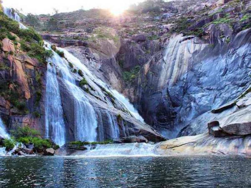 También en la Costa da Morte, antes de llegar al “fin de la tierra” se encuentra Ézaro, una parroquia del municipio de Dumbría. El lugar es por su impresionante cascada en el Monte Pindo, donde el río Xallas se precipita al mar dejando un paisaje insólito. Otra atracción turística es el impresionante balcón natural que actúa de mirador al océano Atlántico y los valles rocosos que lo bordean.