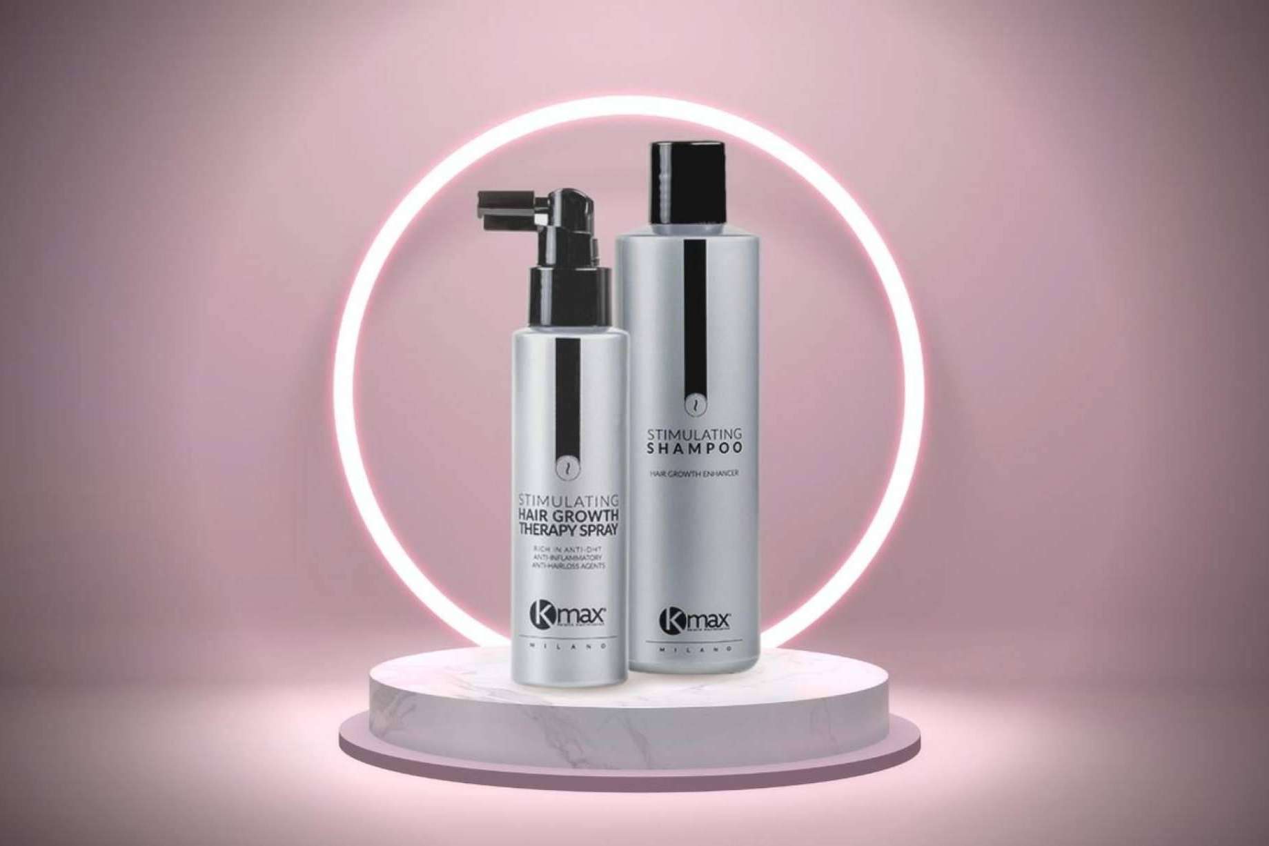 Para utilizar correctamente este tratamiento, es importante utilizar en primera instancia el Kmax Stimulating Shampoo, un producto caracterizado por estimular el crecimiento del pelo, gracias a su gran cantidad de ingredientes beneficiosos, entre los que destacan el triaminodil, ácido azelaico, betasitosterol y ácido 18 beta glicirrético, entre otros. Posteriormente, se debe aplicar el segundo paso que consiste en el Kmax Stimulating Hair Growth Therapy, una loción en spray especial para estimular el crecimiento del cabello fino y que, además, contiene propiedades antiinflamatorias.