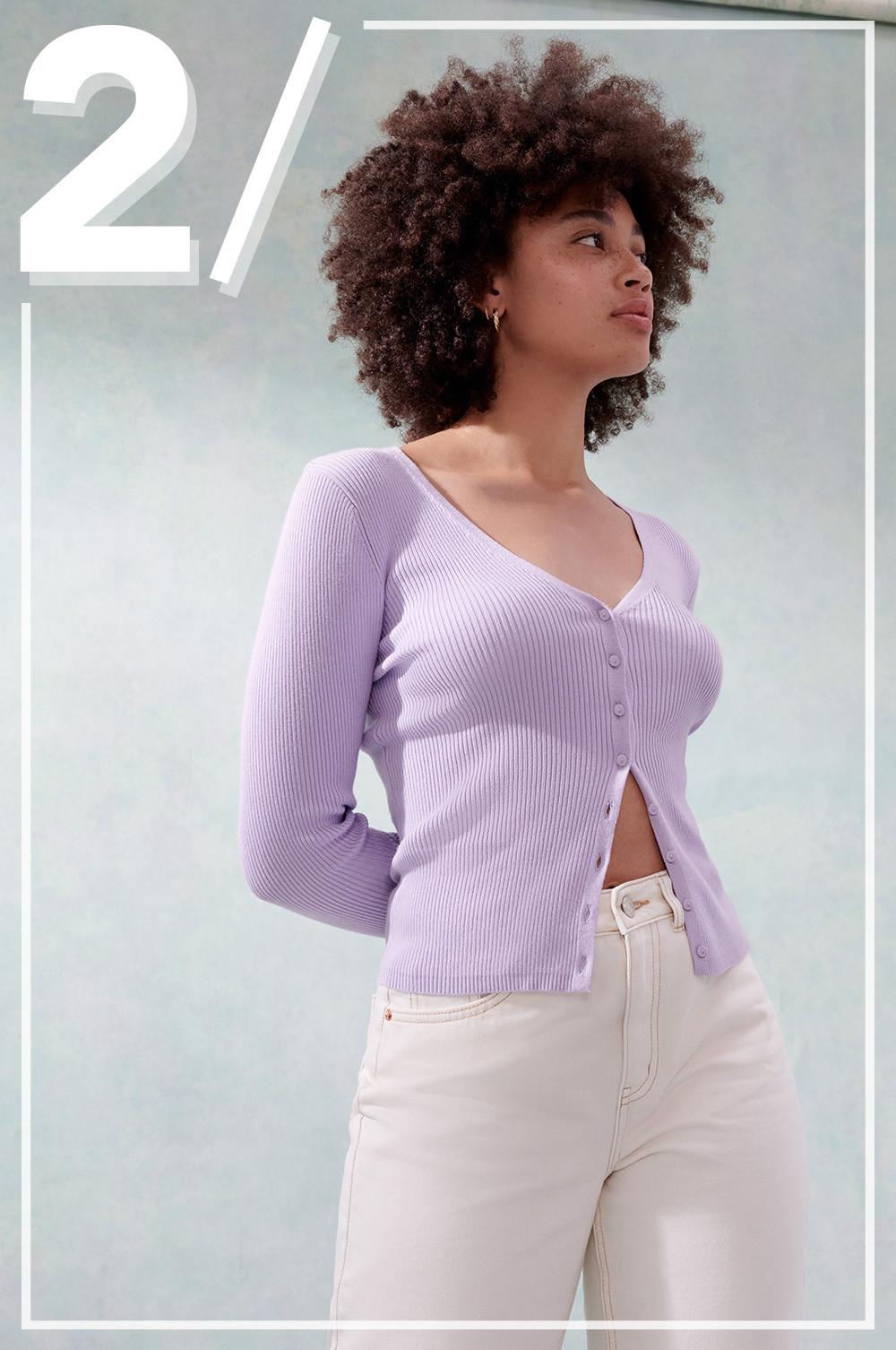 Las opciones al estilo cárdigan también prometen estar muy presentes para esta primavera. Un buen ejemplo lo tenemos en esta bonita rebeca elaborada en punto de Primark que, además, destaca por contar con un favorecedor y suave tono pastel lila. Sin duda, una buena opción para crear cientos de looks que te puedes llevar a casa por solo 8 euros.