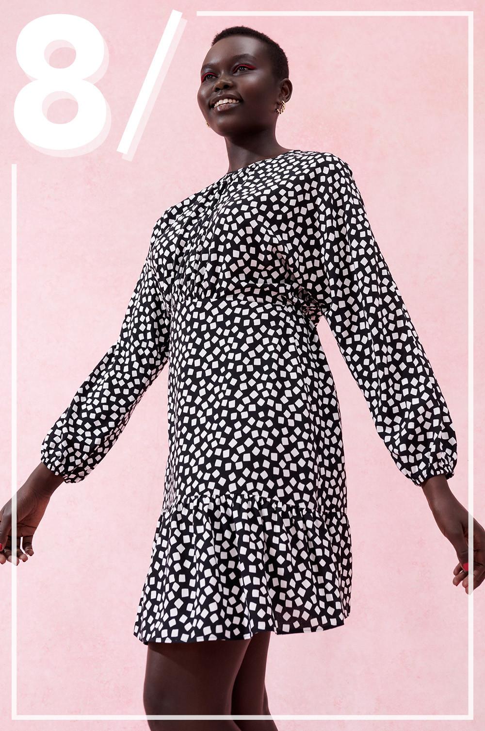 Las opciones inspiradas en los años 60 tienen mucho que decir para la próxima primavera. Una de las prendas que más llaman la atención en este sentido es este minivestido de Primark. De corte ancho, con base de color en negro y estampado en forma de pequeños cuadrados blancos, captará todas las miradas. Su precio, de solo 13 euros, también convence.