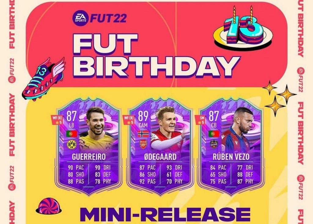 Es importante recordar, que en la primera ediciĂłn de los FUT Birthday de FIFA 22, hubo cartas como las de SuĂĄrez; Kroos; Allan; Nuno Mendes; Grealish; Odegaard; Di Lorenzo; Bebou; Raphael Guerreiro; Ruben Vezo; Torreira; Kamada y Abraham. Estos grandes jugadores (la mayorĂa de ellos compiten en las principales ligas del mundo), no solo tuvieron mejoras en sus stats de habilidades, sino que ademĂĄs tienen mejoras en sus skills o en su pierna mala. Haciendo de estos coleccionables algo muy codiciado por los fanĂĄticos, si no tambiĂ©n por los mejores jugadores.