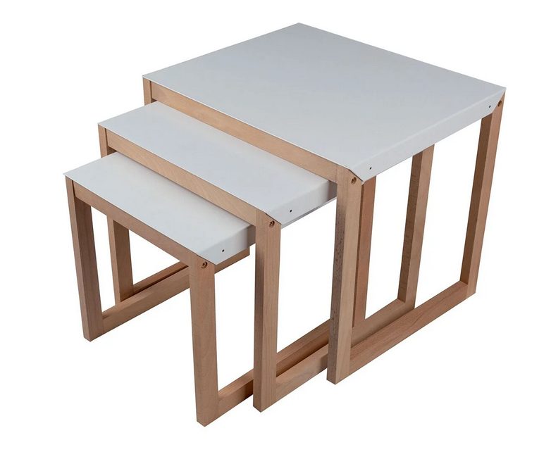 Lidl tiene una interesante oferta en mobiliario con diseños muy llamativos y llenos de estilo. Un buen ejemplo de ello es el set de mesas nido, con tres unidades de dientes tamaños. El tablero de la mesa es de hierro con recubrimiento de polvo y acabado en blanco, y las patas son de haya, lacadas. Ofrece múltiples posibilidades de combinación y se pueden guardar una debajo de la otra para ahorrar espacio. Las tres mesas cuestan 44,99€.