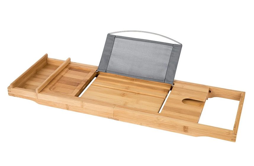Date un baño relajante con todas las comodidades gracias al estante de bambú de la marca Wenko. Es extensible y se adapta a varias anchuras de bañera, y ofrece soporte para revistas, libros, para colocar la tableta y un hueco para el móvil. También tiene un soporte para copas de vino, y una zona para toalla. Está fabricado en bambú sostenible, resistente a la humedad, robusto y natural. Las medias son 70-104 x 22 x 4 cm. y su precio en Lidl es de 16,99€.