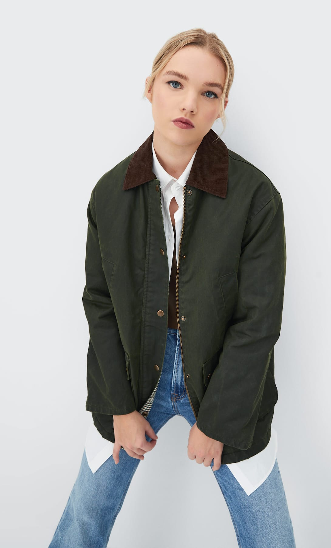 Las parkas son otras de las opciones que debes tener en mente para completar tus looks primaverales. En este caso, destaca de Stradivarius esta, de efecto encerado y un bonito tono verde oscuro, perfecta para acompañarte en cualquier ocasión. Además, cuenta con un precio de 69,99 euros. Una inversión para toda la vida.