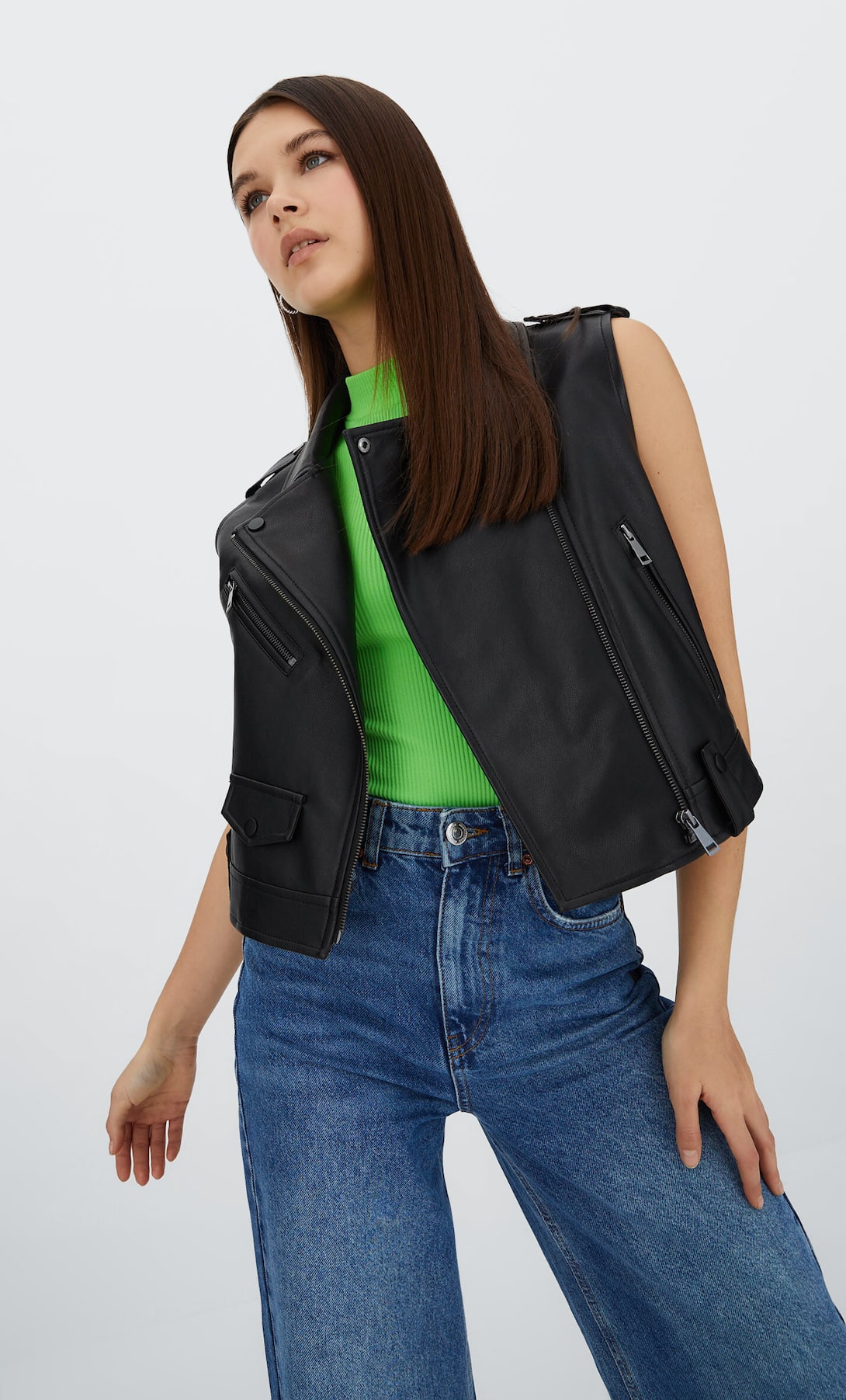 9Chaleco efecto piel de Stradivarius, cómodo y llamativo