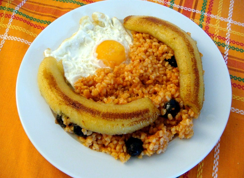 Es una preparación que comenzó a elaborarse en los tiempos de la Capitanía General de Cuba, siendo un plato que consiste en arroz blanco moldeado junto a un huevo frito, salsa de tomate y un plátano frito.