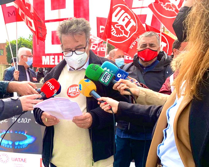El representante de UGT llevaba documentos, para poder comunicarse con la prensa a través de un discurso bien estructurado y preparado, sin embargo, se mostró incapaz de leer y pronunciar correctamente las palabras. «Esta situación, pero probación … la población más vurn (…) más vulnerable…impacable, inapa…e inaplazable… Al mismo tiempo mientras que los oligol… los oligolopios”.