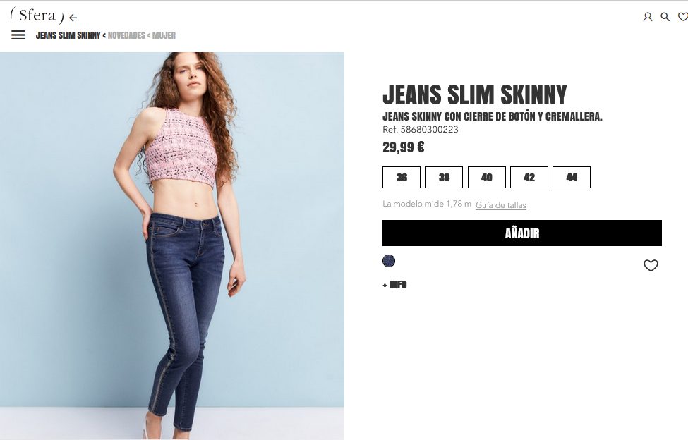 Es uno de los Jeans skinny con cierre de botón para una mejor comodidad. Además, esta hermosa prenda cuenta con una cremallera para un mejor estilo. Es una de las prendas de la tienda que ofrece un estilo perfecto para aquellas mujeres que aman la moda. Entonces, si desean comprar este Jean solo deben entrar a Sfera por 29,99 €.