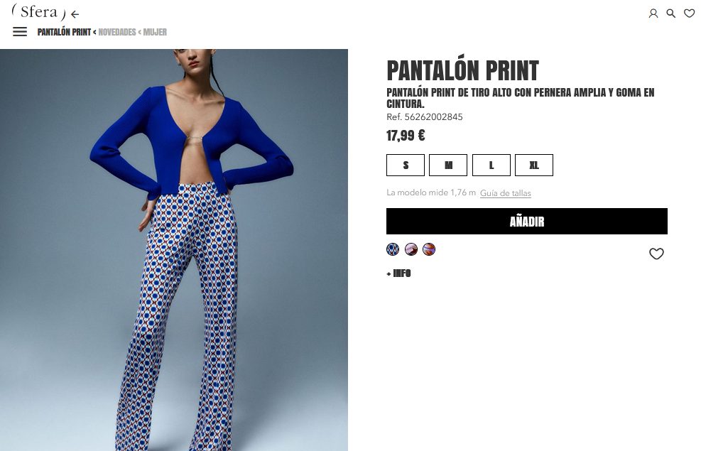 Pantalón print de tiro alto con pernera amplia, es otra de las prendas que ha generado una tendencia en esta temporada. Por lo que, no deberían dejarla pasar en esta oferta ofrecida por la tienda. Además, posee una goma en cintura para un mejor ajuste y estilo. Entonces, si desean comprar esta prenda que está en temporada solo deben entrar a Sfera por 17,99 €.