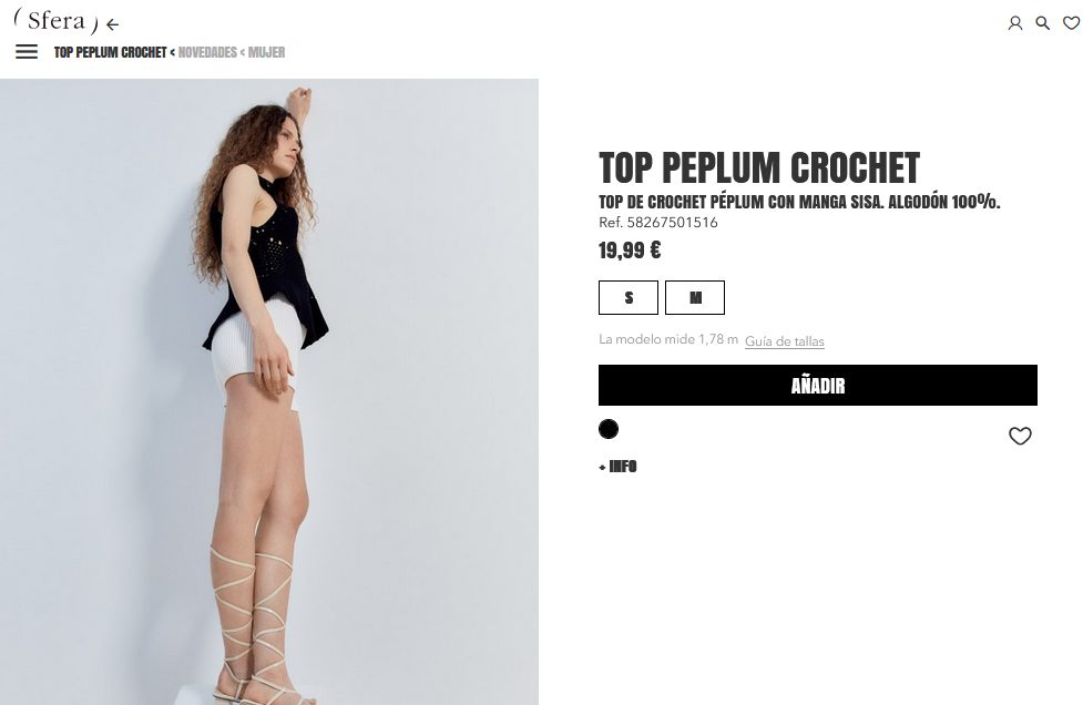Es otra de las prendas que no deben dejar pasar en esta temporada, dado que ofrece una comodidad en todo momento. Además, es un top de crochet péplum con manga sisa para ofrecer un mejor estilo. Esta es elaborada en algodón 100% para un mejor estilo y comodidad. Si desean comprar esta prenda solo deben entrar a Sfera por un precio de 19,99 €.