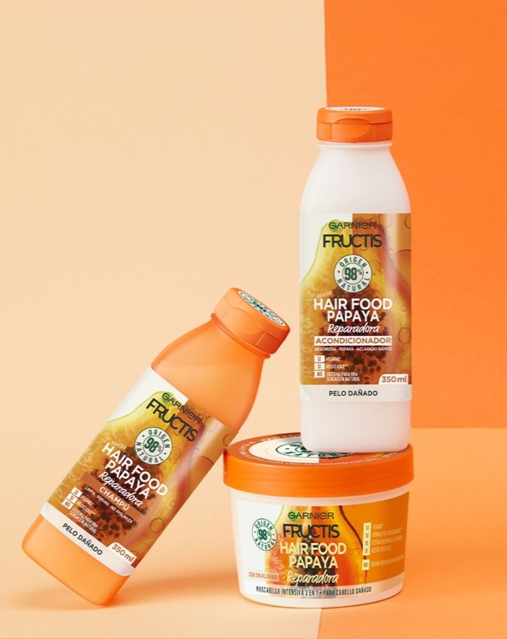 Comenzamos con un producto que no es de la marca blanca de Mercadona, pero que le puedes encontrar en sus estanterías sin problemas. Se trata de un champú reparador Fructis de Garnier con papaya y su precio es de 4.50 euros. Junto a él, tienes que comprarte la mascarilla reparadora, por 4,50 también.