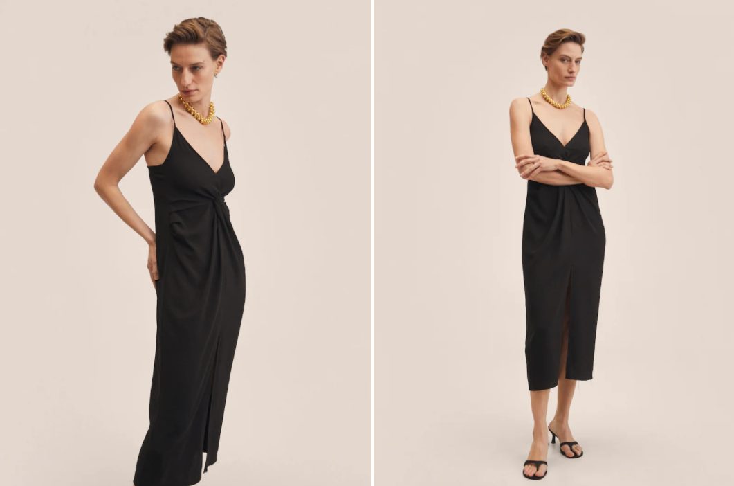 5Fruncido y con abertura, el vestido negro de Mango que es un básico