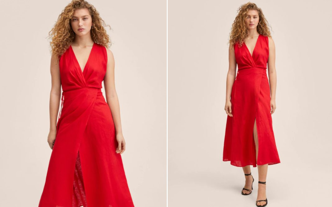 El lino es uno de los materiales más usados en la época de primavera y un buen ejemplo lo encontrarás en este elegante vestido cruzado en el color rojo pasión que nunca falla. De estilo cóctel y de corte clásico, su falda en forma de A es una de las que mejor quedan con todo. Con un precio de tan solo 49,99 euros, sin duda es una de las mejores inversiones para tu armario.