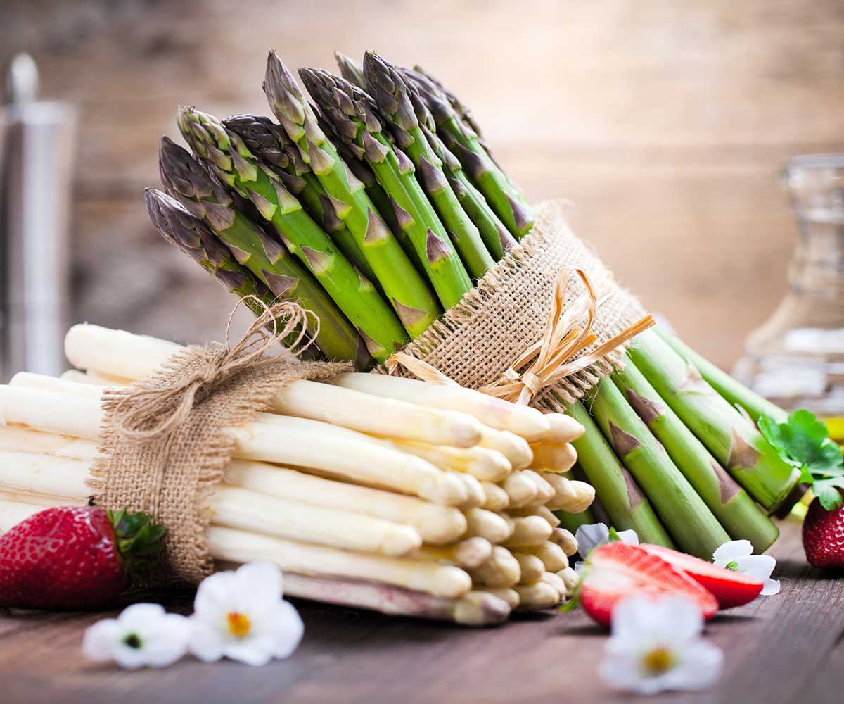 No pueden faltar en ninguna cocina en época de temporada, los Espárragos. Cantidad de platos son adornados y combinados en guarniciones con este delicioso vegetal que tiene un excelente efecto diurético, dado que posee alto contenido en sodio y con muy baja cantidad de potasio.
