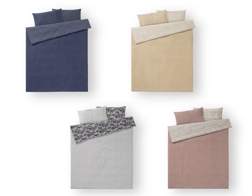 Renueva tu ropa de cama gracias a Lidl eligiendo entre varios modelos de hilo teñido de alta calidad. Es para camas de 180 cm, y tienen un acabado sanforizado que las hace resistentes al encogimiento. Son de lino y algodón muy suaves y refrescantes al tacto. Se pueden lavar en agua caliente hasta 60ºC. El set incluye una sabana de 260 x 220 cm. y 2 fundas de almohada de 45 x 90 cm. Ahora lo tienes a un precio de 29,99€.