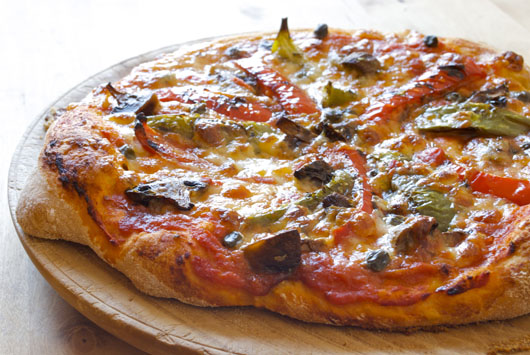 Finalmente hornea durante 20 minutos aproximadamente. Ojo, no te olvides si utilizas levadura de panadería deshidratada, debe incorporarla junto con la harina. Con estas cantidades, sale una pizza grande o dos medianas, con lo que puedes estar tranquila.