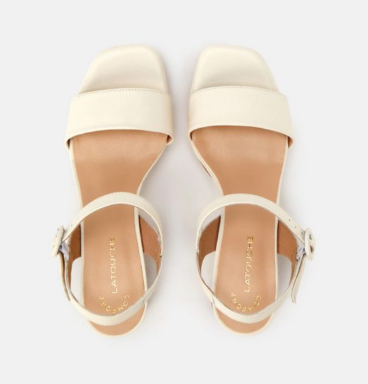 Las sandalias blancas son ideales para algunos estilismos de primavera y de verano, y aportan un toque casual, juvenil y desenfadado a nuestros looks. La marca Latouche cuenta con una línea llamada Comfort que nos ofrece modelos especialmente cómodos, de un ancho especial para que todo el mundo pueda lucir sandalias. Es un diseño sencillo con una tira ancha en la parte delantera y cierre de hebilla en tono blanco. El tacón es de tipo bloque de 6 cm de altura y la parte de delante tiene una plataforma de 2 cm por lo que es un calzado tan estiloso como confortable. Su precio en El Corte Inglés es de 99,99€ y las puedes adquirir aquí.