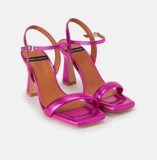 Seguimos con los colores llamativos, esta vez con una propuesta de Ángel Alarcón. Se trata de unas sandalias de tacón con un diseño de tira fina y puntera cuadrada, de un color fucsia brillante y ligeramente metalizado. La plantilla está muy acolchada, lo que le proporciona un plus de comodidad. El tacón es de tipo bloque con una altura de 7,5 cm, y tiene un cierre de pulsera con hebilla lateral. Unas sandalias perfectas para eventos especiales, o para destacar un look formal. Su precio en El Corte Inglés es de 85€ y las puedes comprar aquí.