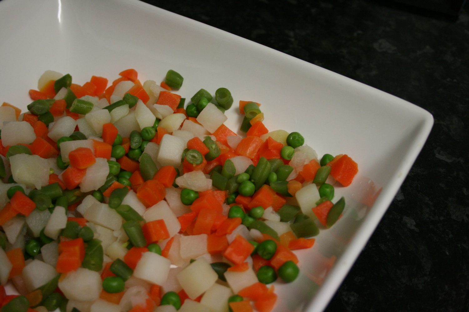 Una vez que tengas preparados todos los ingredientes que vas a necesitar, es el momento de ponerte manos a la obra. Prepara el cronómetro, pues no te vas a creer lo poco que vas a tardar en hacer esta ensaladilla rusa. Comienza pelando tanto las patatas como las zanahorias y cortando en dados de tamaño pequeño. Sazona al gusto y añade una o dos cucharadas de aceite de oliva virgen extra. Ahora, coloca en un recipiente que se pueda introducir en el micro.