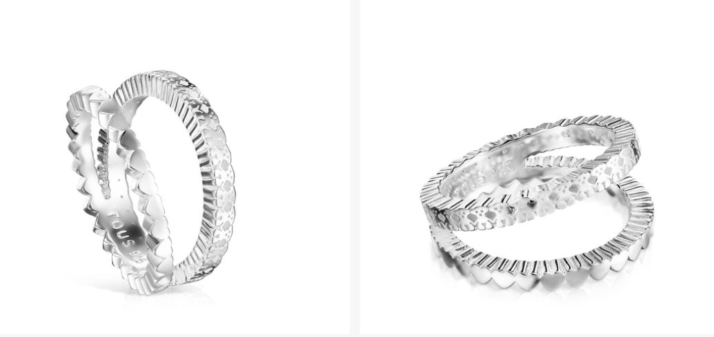 Los anillos dobles también destacan dentro de la sección de novedades de Tous. Un buen ejemplo lo encontrarás en este anillo de plata, doble y con motivos de osos y pequeños corazones, que se convertirá en la pieza central de tu joyero y en una de las más románticas. Además, lo tienes disponible ya en tiendas y web por tan solo 60 euros. No te lo querrás quitar.