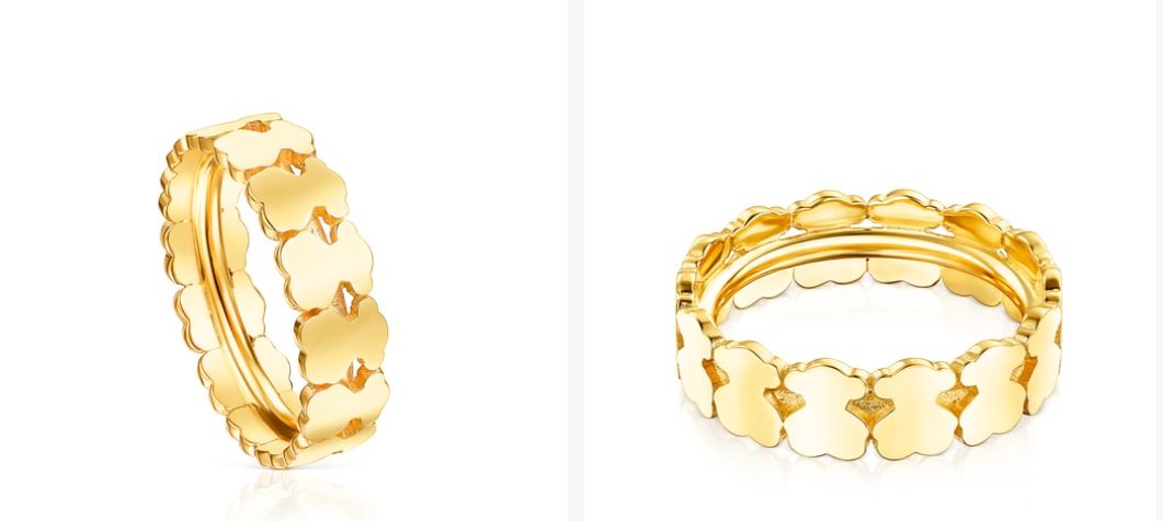 La plata vermeil es una de las más llamativas debido a su bonito tono dorado. En este caso, si eres una gran fan de Tous, no te puedes perder este anillo de buen tamaño compuesto a través de figuras de oso, que combinará con el resto de tu armario y también otras joyas. Con un precio de 90 euros, también será una de tus grandes inversiones.