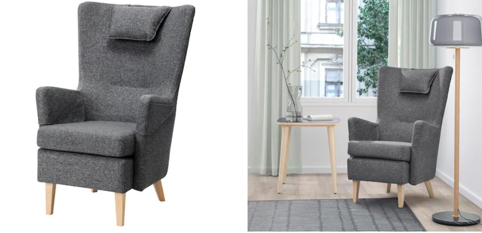 En este sentido, tenemos que destacar este bonito sillón gris de Ikea, que combina con todo, y que crea un bonito contraste con elementos en madera. En este caso, su precio es de 299 euros. Otra gran inversión.