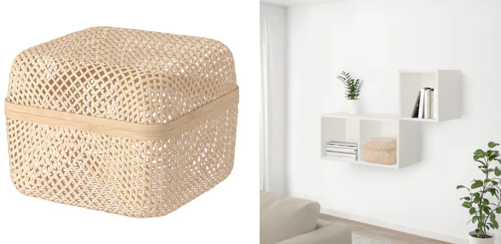 Un gran ejemplo lo encontramos en esta caja de color natural, con tapa, que ya tenemos disponible en Ikea y que nos aportará un poco de almacenamiento extra. Su precio es de solo 15 euros, lo que la hace aún más apetecible.