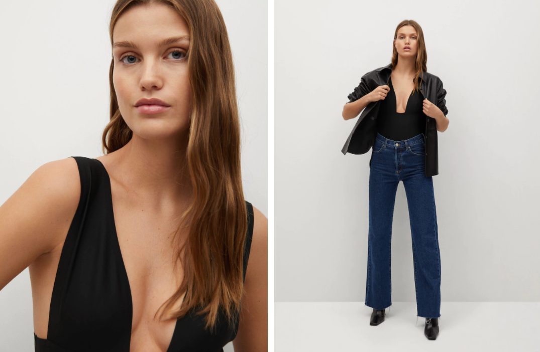 Otra de las prendas que podemos encontrar en Mango y que son aptas tanto para interior como para el exterior es este bonito y elegante body realizado en un potente color negro.
