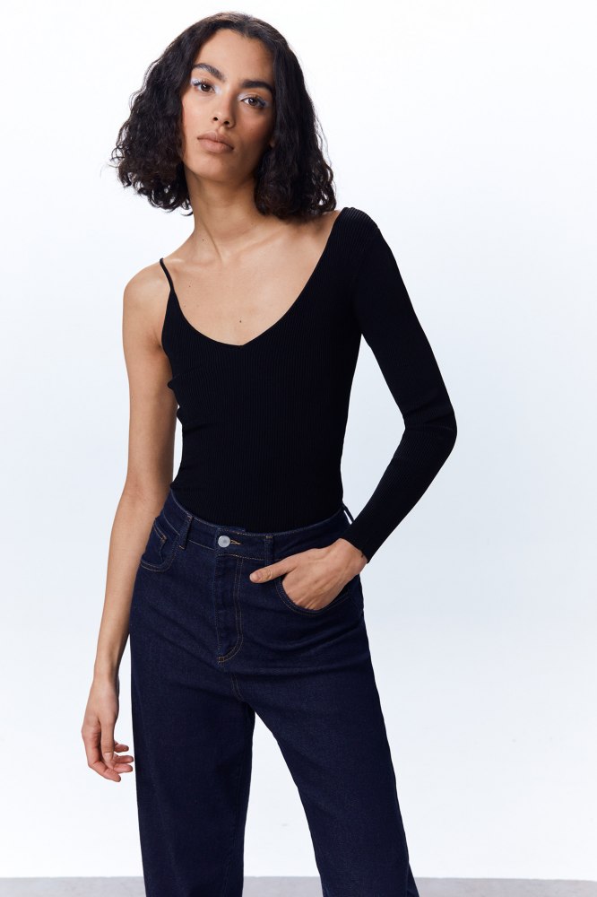 6Jersey asimétrico con tirante, una prenda elegante y original