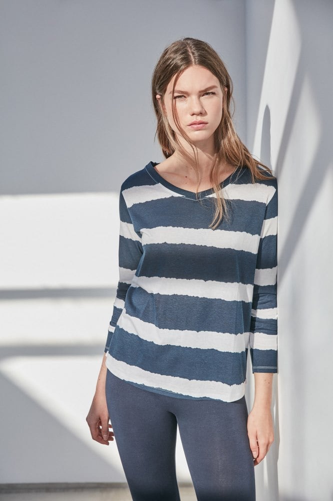 Las rayas vuelven a ser el eje central de la temporada y uno de los estampados que no pueden faltar en tu armario de primavera. En este caso, tenemos que elegir esta camiseta de Sfera, debido a su diseño sostenible con rayas horizontales en azul y blanco al más puro estilo marinero. Además, ahora la puedes conseguir por solo 7,15 euros cuando antes costaba 8,99. No querrás quedarte sin ella.