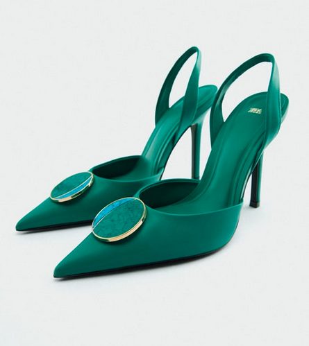 Si buscas un calzado diferente y especial, esta temporada en Zara tienes este diseño en un llamativo color verde con las que conseguirás destacar y ensalzar todos tus conjuntos. El diseño destalonado y estilo salón, con un tacón de 10 cm. Tiene un adorno en la parte delantera que le aporta un toque de sofisticación, y cuenta con una plantilla flexible de espuma y látex que le brinda un mayor confort. Son de piel de oveja y los puedes conseguir por 49,95€.
