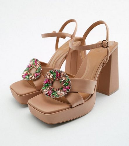 Las plataformas tampoco pasan nunca de moda, además de dar un toque de glamour a cualquier estilismo. Esta primavera apuesta por estas sandalias de Zara, cargadas de personalidad gracias a su diseño de punta cuadrada, el tacón de plataforma y el detalle de adornos brillantes de colores en contraste. Cierra con hebilla en el tobillo y tiene una cómoda plantilla flexible de espuma con látex. Son de poliéster en color beige y tienen un precio de 29,95€.